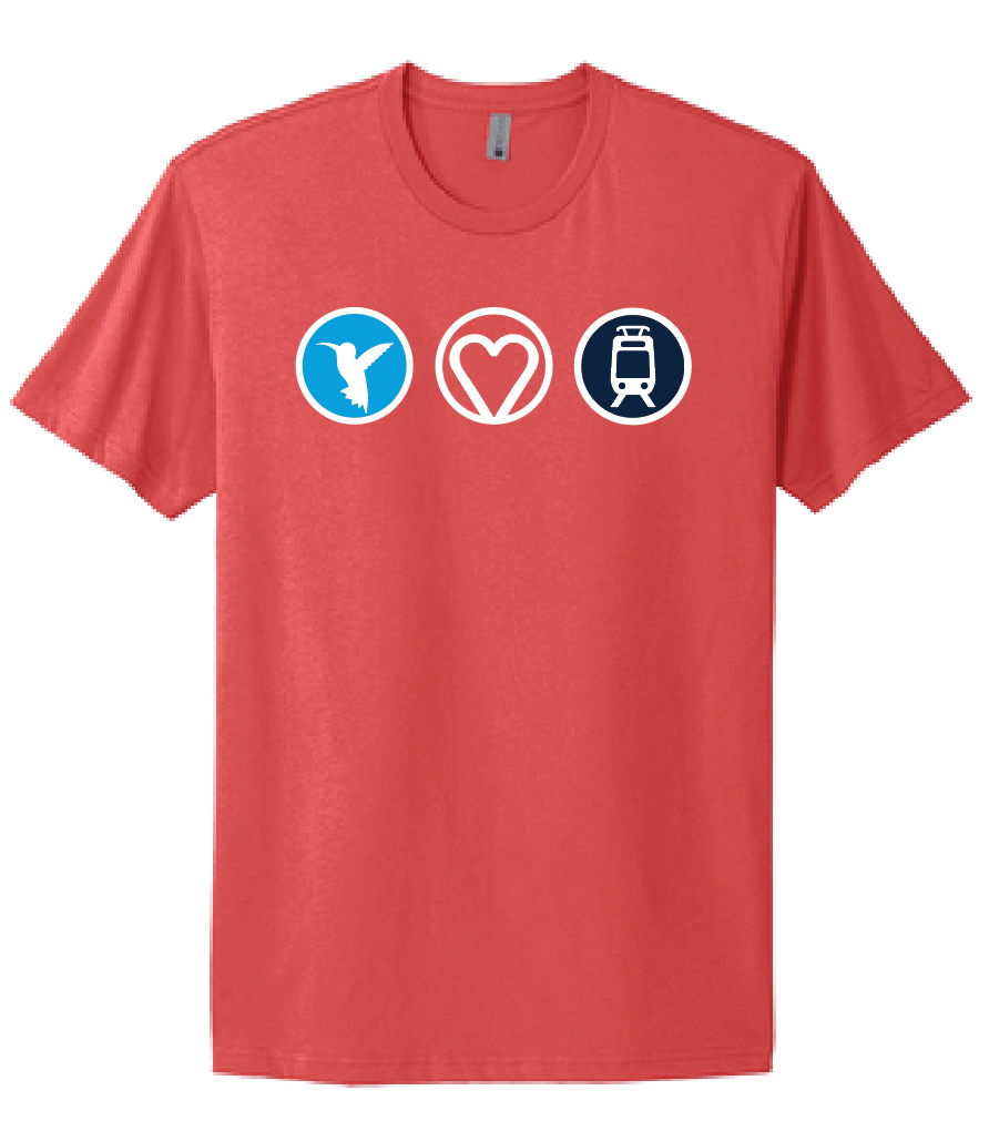 For the Grand Opening Evening Celebration of the Lynnwood City Center Light Rail Station on August 30, 2024, Brock designed this three-icon design for volunteer & general t-shirts and a sticker. The hummingbird represents the hummingbird statue at the light rail station, the heart represents a heart statue at the nearby Lynnwood Convention Center, and the third icon is the image used by Sound Transit to represent light rail. Colors were matched to Sound Transit’s official color palette.