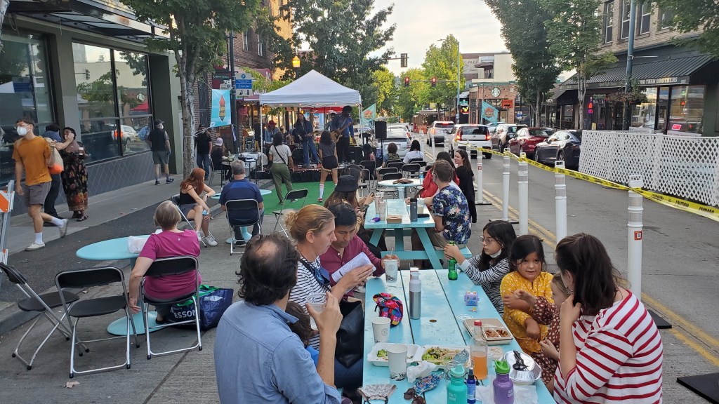 Volunteered on Outdoors on The Ave Steering Committee that designed, built community support, and implemented expanded outdoor dining options on University Way NE (The Ave) in Seattle’s U District during the summer of 2021. The short-term goal was to support minority-owned businesses during the COVID-19 Pandemic, and the long-term goal was to build support for pedestrianization of The Ave. Brock produced the design schematics for the project, conducted business outreach, assisted with permitting, and helped in setting-up the street. The project has since continued on in other forms.